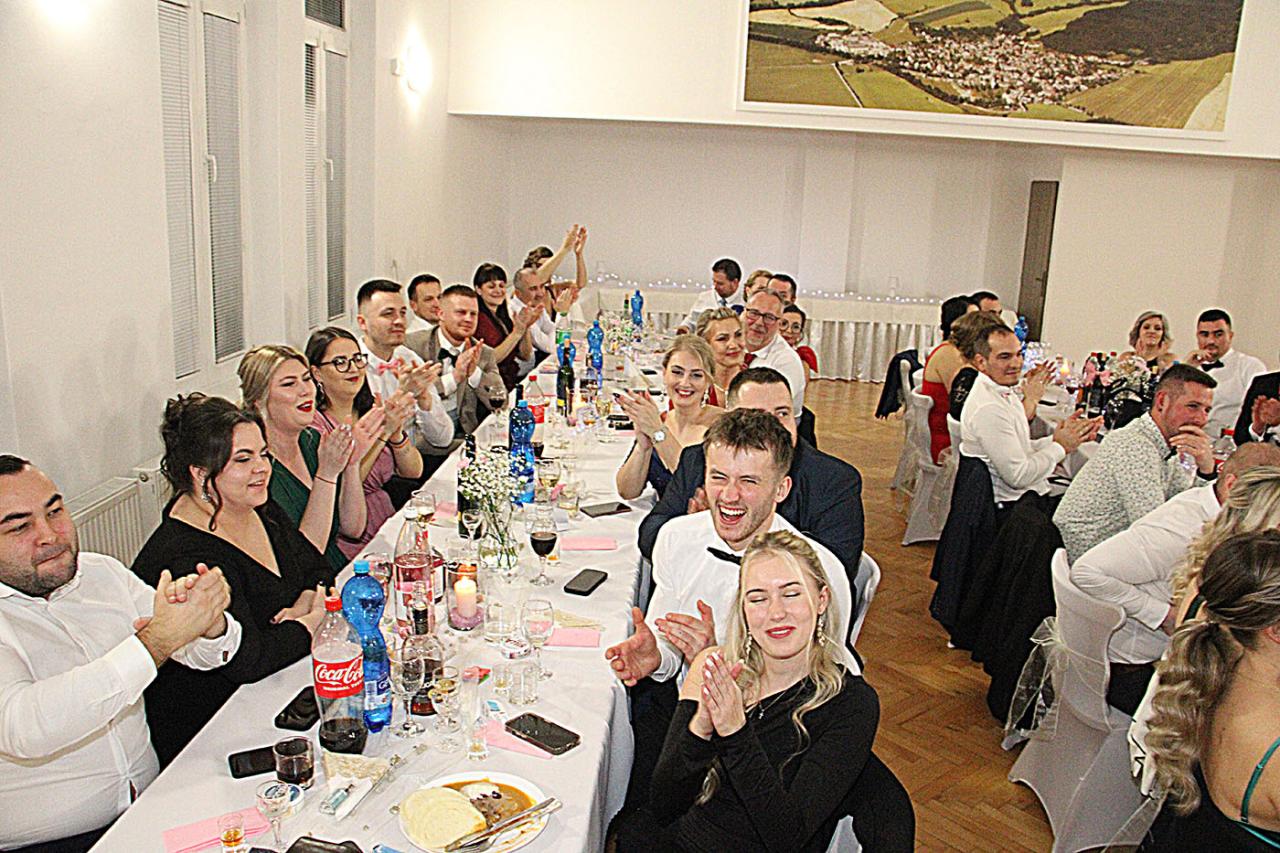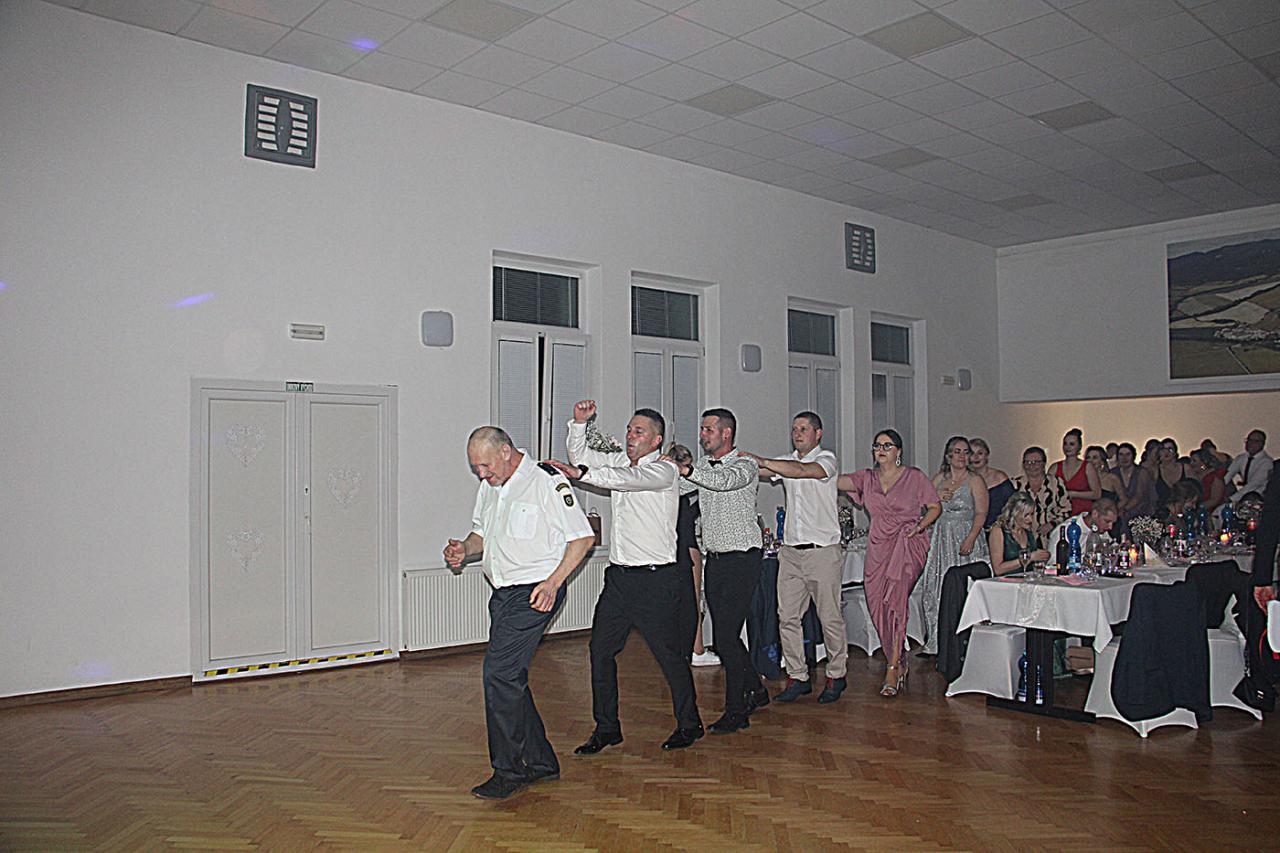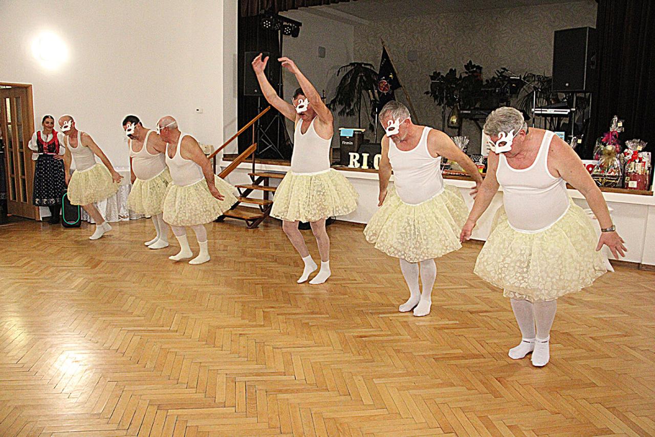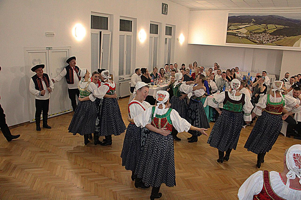 Potom už zazneli prvé tóny valčíka. Ako prví vyšli na parket predseda a veliteľ s manželkou (tiež aktívnou hasičkou) a starosta obce so svojou manželkou. Čoskoro bol parket plný tancujúcich. Zábava už bežala na plné obrátky, keď do sály prišli temer dve desiatky folkloristov, hostí z folklórneho súboru Sielnica z Lazian. Veselým programom piesní a scénok prispeli k dobrej nálade. Veľký potlesk si vyslúžila aj vtipná cigánka s „deckom“ pod pazuchou, snažila sa totiž medzi pánmi hľadať otca dieťaťa. A vyvrcholením programu bolo vystúpenie mužskej časti Sielnice, prestrojenej za baletky v krátkych sukničkách.
