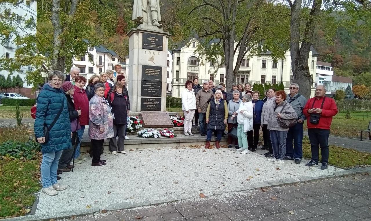 Posledným miestom, ktoré sme navštívili na spomienkovom zájazde, boli Rajecké Teplice. Pamätník so sochou partizána je umiestnený v kúpeľnom parku. Počas oslobodzovacích bojov v Trenčianskych Tepliciach padlo 8 partizánov a 20 civilistov.