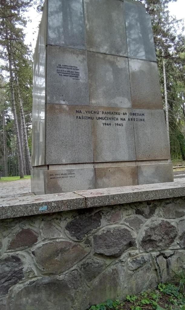 K pamätníku na ktorom je nápis: Na večnú pamäť 69 obetiam fašizmu umučených na Brezine 1944 – 1945 sme s úctou položili veniec.