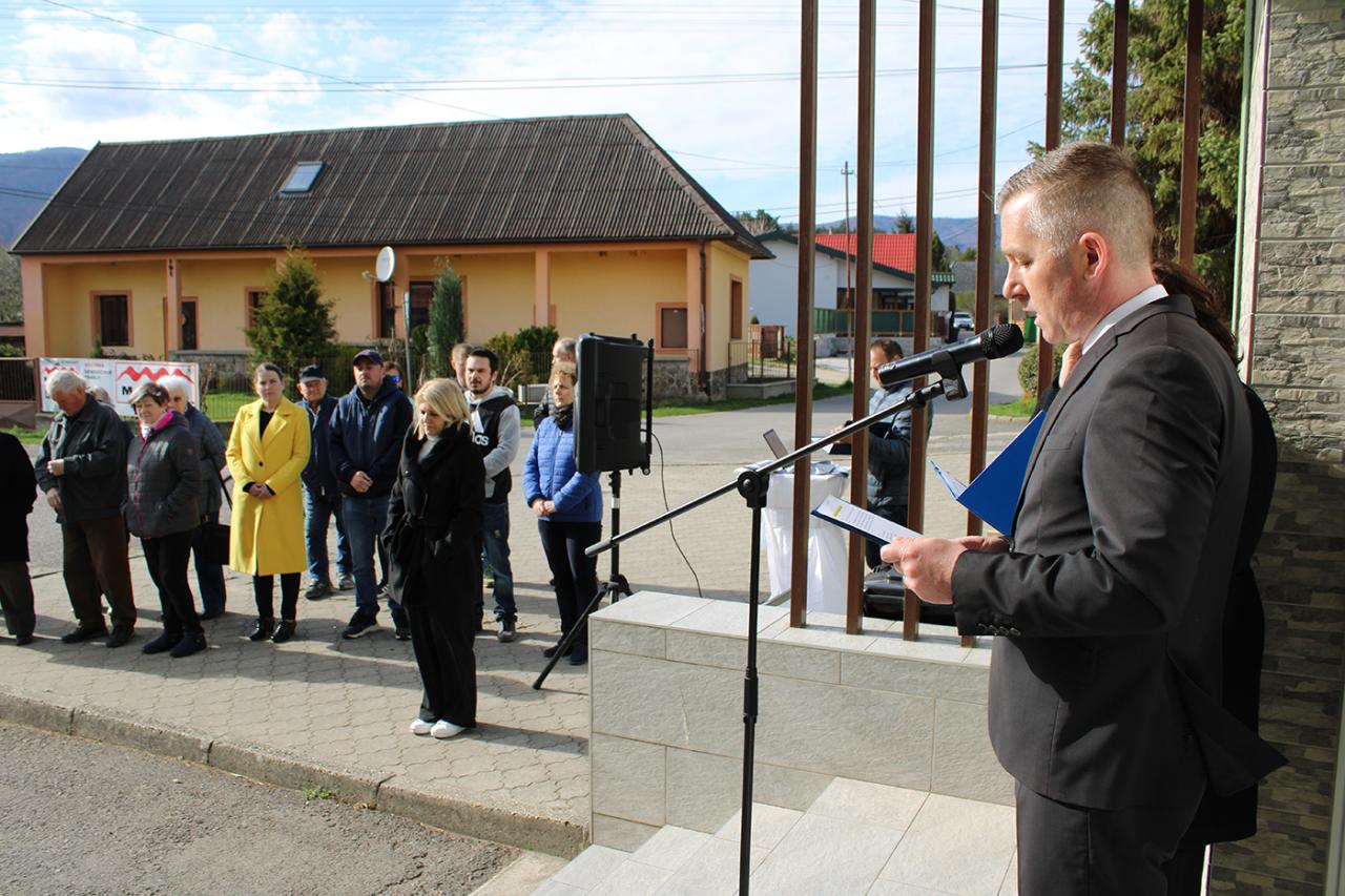 K zhromaždeným občanom a členom Slovenského zväzu protifašistických bojovníkov sa najskôr emotívne prihovoril starosta obce Juraj Stiffel. Jeho prejav doplnila protivojnovými veršami Irena Balážová. Starosta pripomenul skutočnosti, ktoré predchádzali II. svetovej vojne. Zdôraznil, že práve v našej obci, vtedajšom Cachu, bolo mnoho občanov nemeckej národnosti najtvrdšími odporcami fašistického režimu. Už v marci 1939 prepadlo Cach 900 príslušníkov SS a nemeckej domobrany a odvlieklo 86 malinovských proletárov do izolácie. Ale to bol iba začiatok. Najväčším prejavom odporu proti fašizmu bol vznik partizánskeho oddielu Ernesta Thälmanna, ktorý občania podporovali. V novembri 1944 nemecké vojsko obec obkľúčilo a 42 mužov odvlieklo do koncentračných táborov. Mnohí z nich sa nevrátili. Celkový počet obetí protifašistického odboja dosiahol 24.