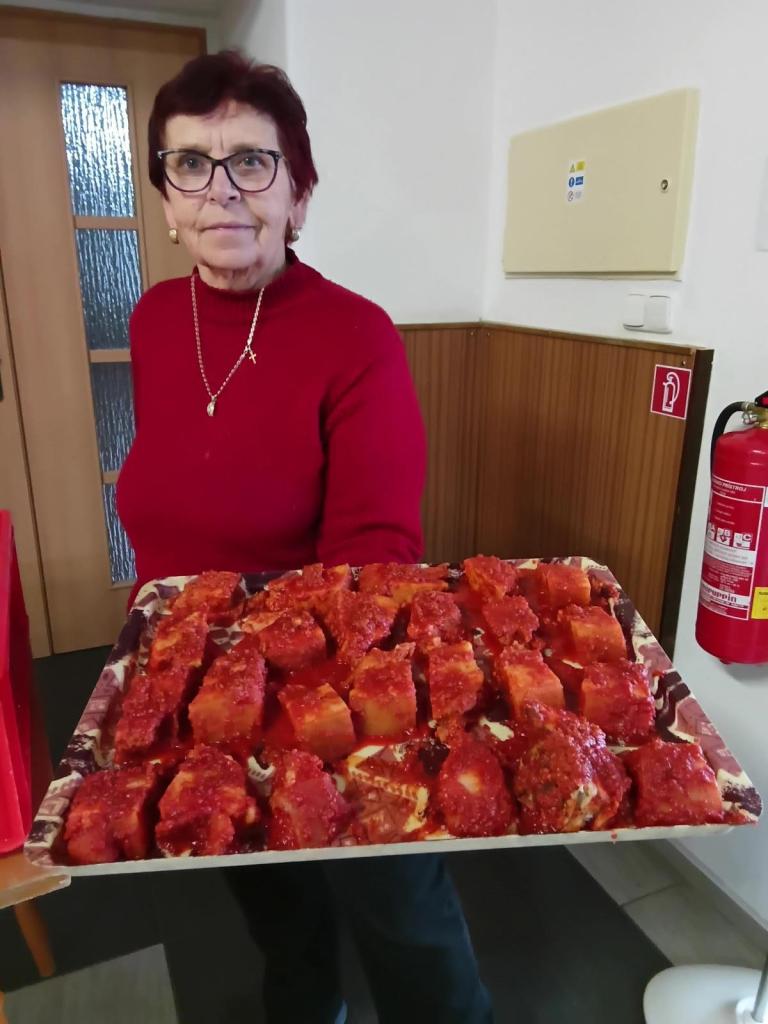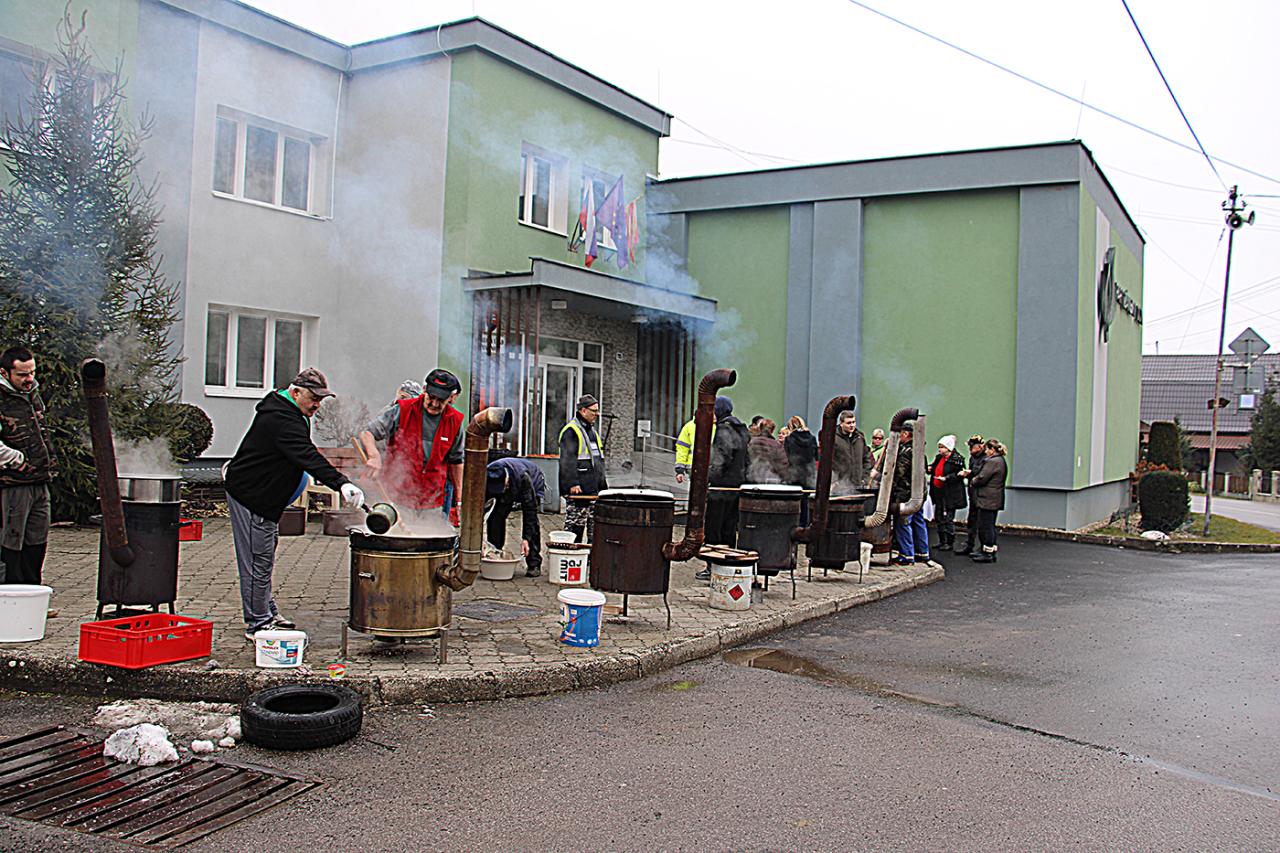Na predaj sme pre záujemcov pripravili okrem tradičných jedál - kaša, kapustnica, klobásy aj novinky – hurky a paprikový lalok, ktoré sa rýchlo rozpredali. Celkovo sa predali 3 kotle kaše, 80 litrov kapustnice a 50 kg klobás.