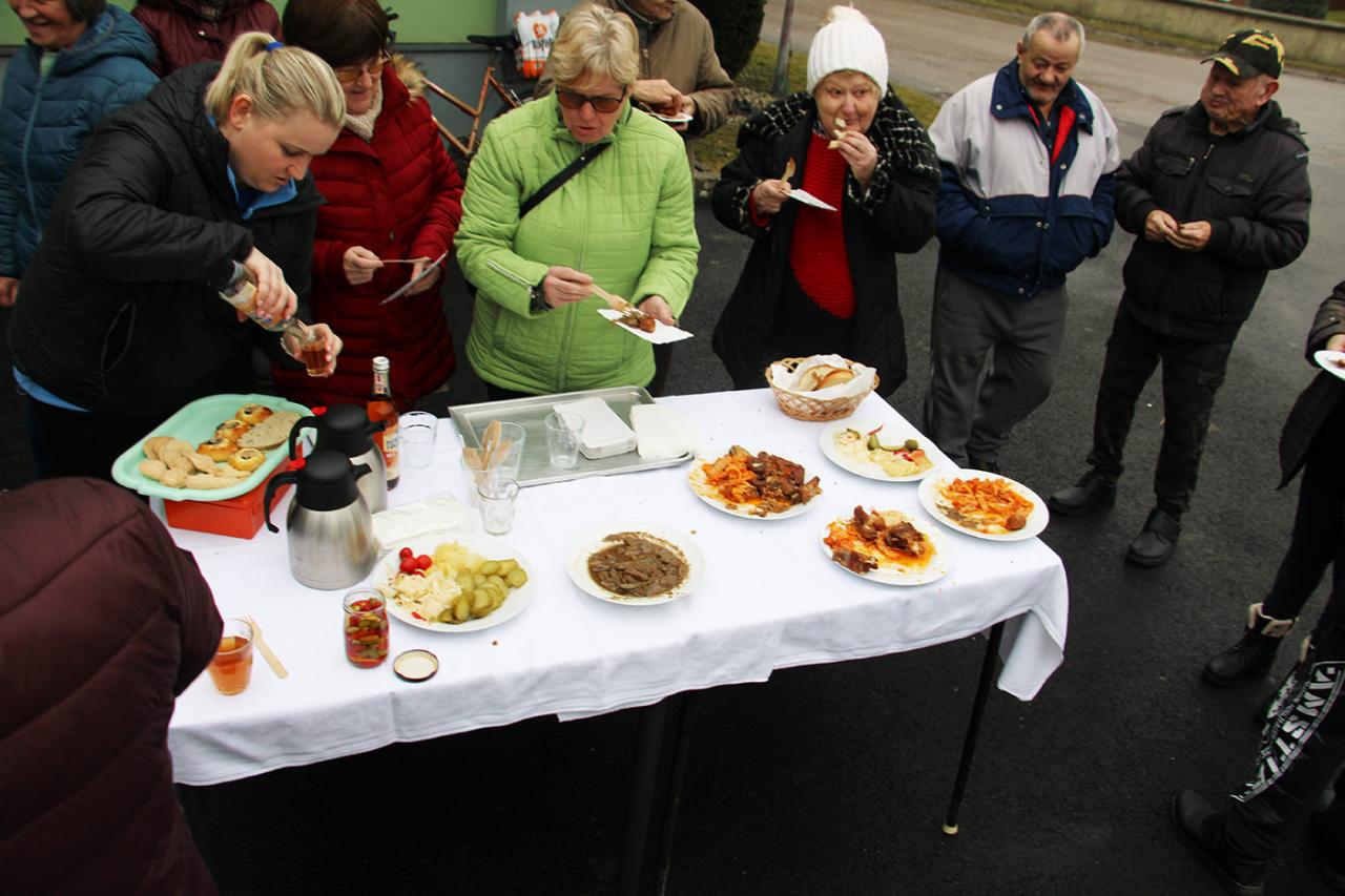 Na ochutnávku a predaj zabíjačkových špecialít sme návštevníkov pozývali prostredníctvom plagátov, miestneho rozhlasu, ako aj cez fb a internet, aby sa o podujatí dozvedelo čo najviac ľudí. Na koštovku sme pre labužníkov pripravili výber tých najchutnejších zabíjačkových špecialít, ktoré potešili milovníkov tradičných jedál: Pečená krkovička a rebrá, pečená klobáska, restovaná pečienka, lalok na kyslo s cibuľou i s cesnakom, čaj s rumom.